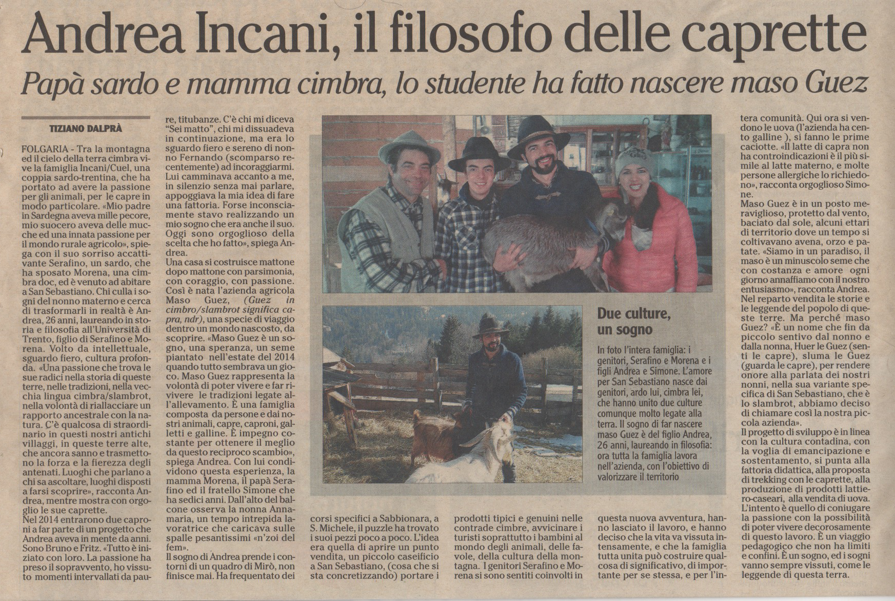 Papà sardo e mamma cimbra, lo studente ha fatto nascere Maso Guez